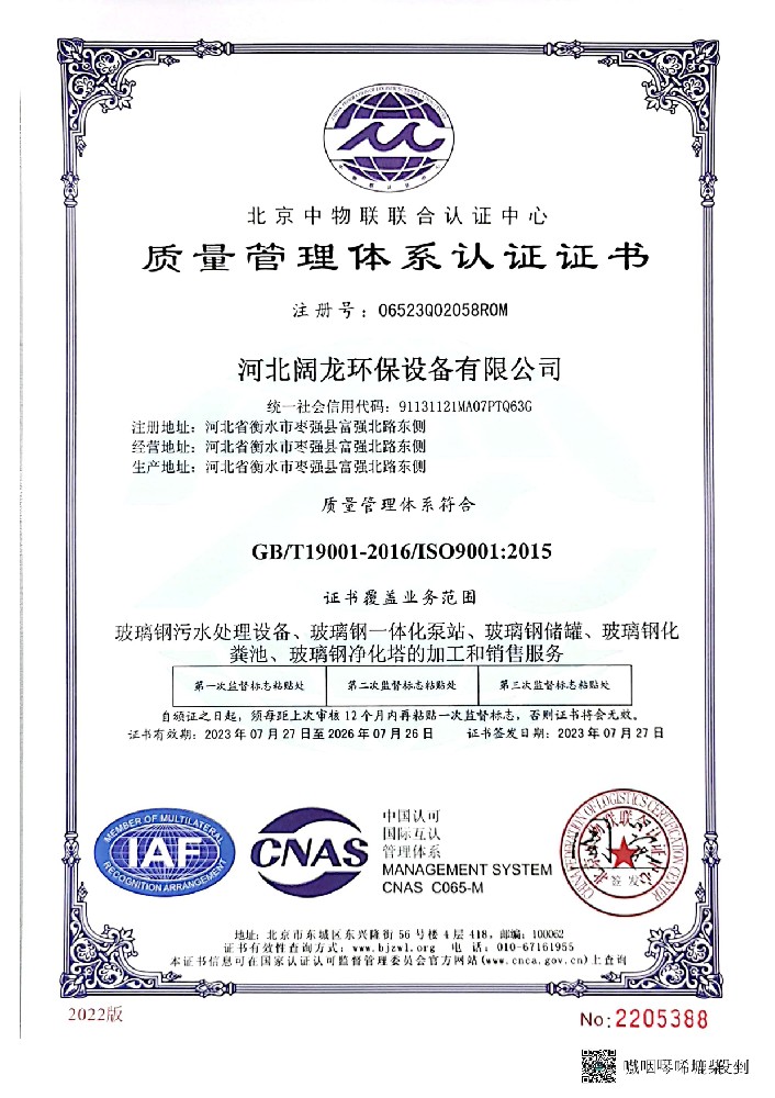河北闊龍環(huán)(huán)保設(shè)(shè)備有限公司發(fā)(fā)祥于京畿之地、董子故里一一河北省棗強(qiáng)(qiáng)縣,位于環(huán)(huán)渤海經(jīng)(jīng)濟(jì)(jì)圈和環(huán)(huán)首都經(jīng)(jīng)濟(jì)(jì)圈的”黃金十字交叉處”,緊臨衡大公路、京九鐵路,距大廣高速10公里,地理位置優(yōu)(yōu)越。設(shè)(shè)備先進(jìn)(jìn),技術(shù)(shù)力量雄厚,能夠獨(dú)(dú)立進(jìn)(jìn)行玻璃鋼環(huán)(huán)保系列產(chǎn)(chǎn)品的研發(fā)(fā)設(shè)(shè)計(jì)(jì)、生產(chǎn)(chǎn)和安裝維修服務(wù)(wù),已發(fā)(fā)展成為華北研發(fā)(fā)實(shí)(shí)力強(qiáng)(qiáng)、技術(shù)(shù)力量雄厚的玻璃鋼環(huán)(huán)保企業(yè)(yè)。公司產(chǎn)(chǎn)品主要有       玻璃鋼水處理系列:玻璃鋼一體化泵站,玻璃鋼生活污水提升泵站,一體化污水處理設(shè)(shè)備,       玻璃鋼除臭系列:玻璃鋼生物除臭設(shè)(shè)備,玻璃鋼污水池蓋板;       玻璃鋼容器系列:立式罐、臥式罐、運(yùn)(yùn)輸罐、壓力罐、發(fā)(fā)酵罐、活性炭過(guò)(guò)濾罐、攪拌罐、加藥罐、玻璃鋼化糞池、現(xiàn)(xiàn)場(chǎng)(chǎng)纏繞大型罐等;       塔器系列:脫硫脫硝塔、氨氮塔、大型脫硫塔內(nèi)(nèi)外件、除塵塔、活性炭吸附塔、酸霧吸收塔、臭氧接觸培、氨氮吹脫塔、生物除臭培、高能離子塔、氯化氫吸收塔等;       玻璃鋼管道系列:夾砂管道、頂管、高壓管、電纜···【詳細(xì)(xì)介紹】
